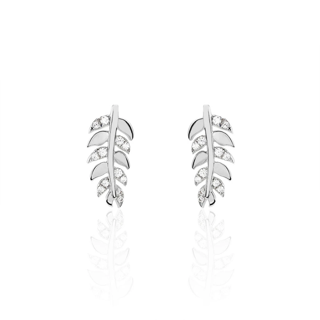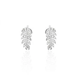 Boucles D’oreilles Argent Blanc 925/1000 Formes Feuilles Oxydes De Zirconium