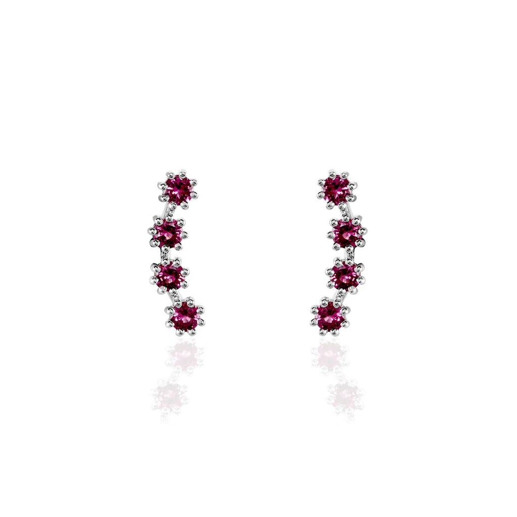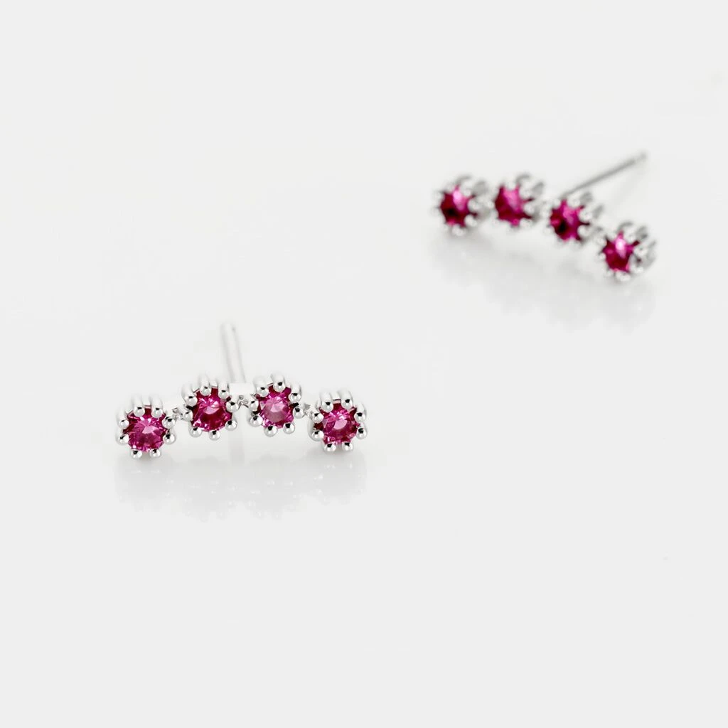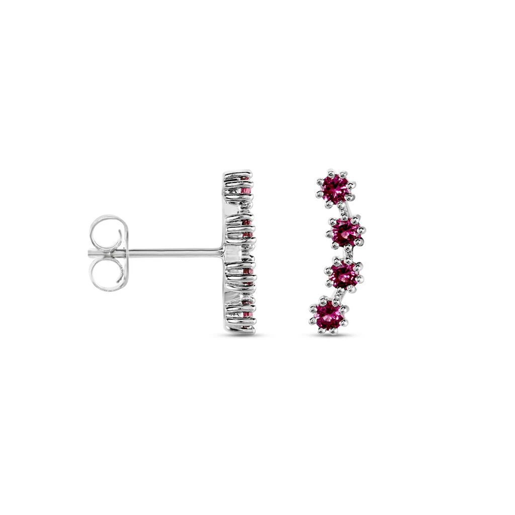 Boucles D’oreilles Puces Argent 925/1000 4 Oxydes De Zirconium Rouges Serti Griffes Effet Perlé