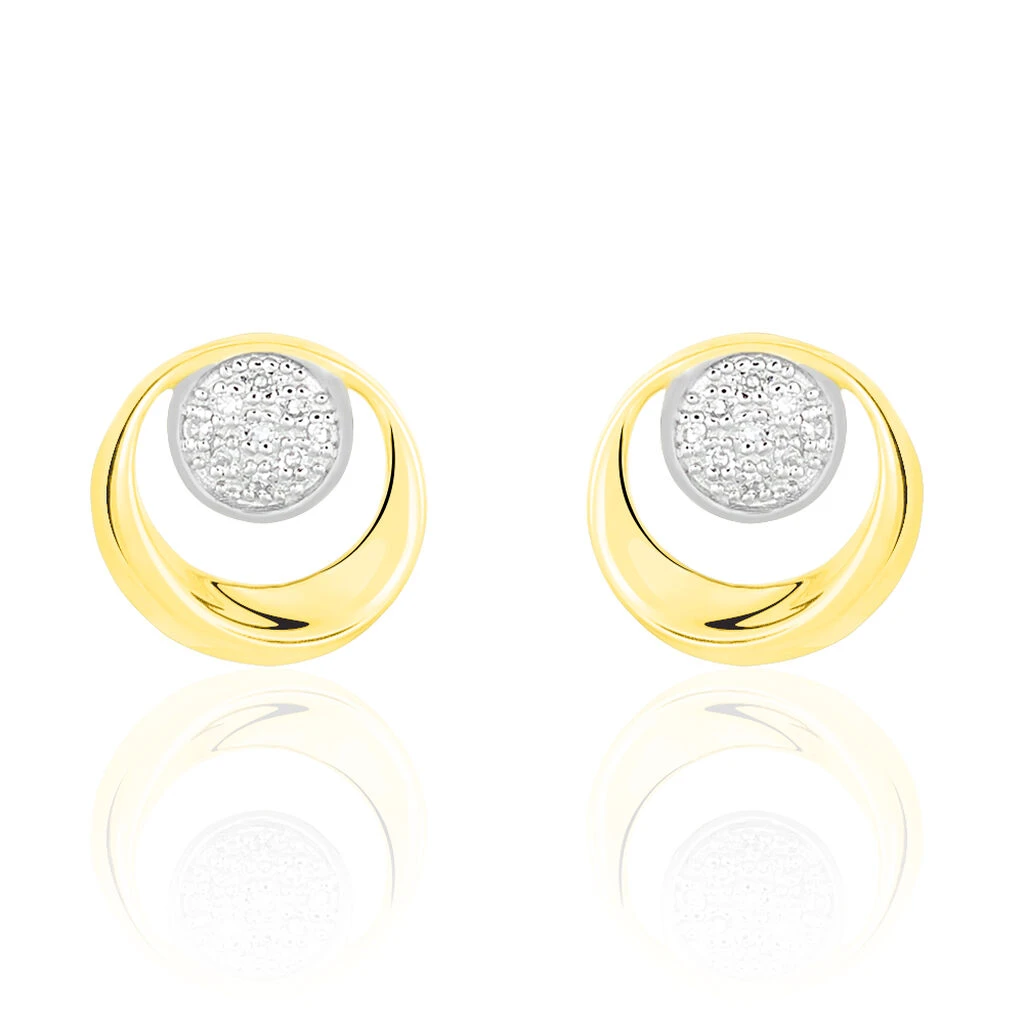 Boucles D’oreilles Or Jaune 375/1000 Puces Formes Cercles Ajoures + Semi Pavage Diamants