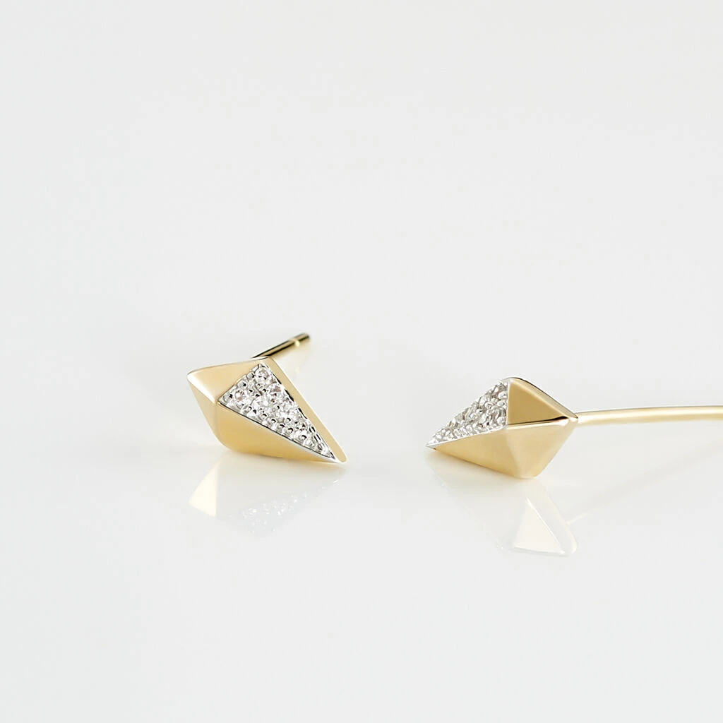 Boucles D’oreilles Or Jaune 375/1000 Formes Losanges Facettées Pavage Diamants