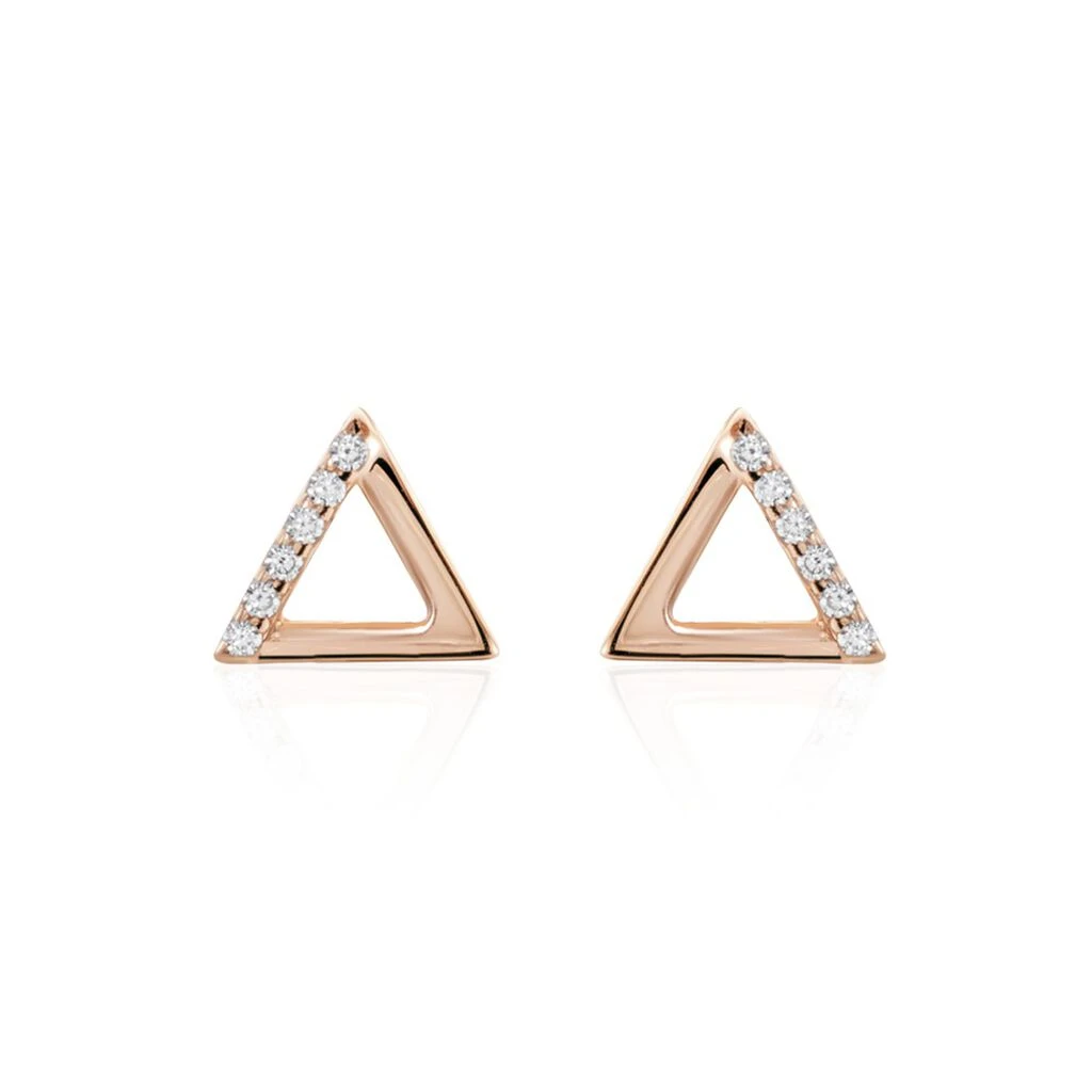 Boucles D’oreilles Puces Argent Rose 925/1000 Triangle Pavage Oxydes De Zirconium