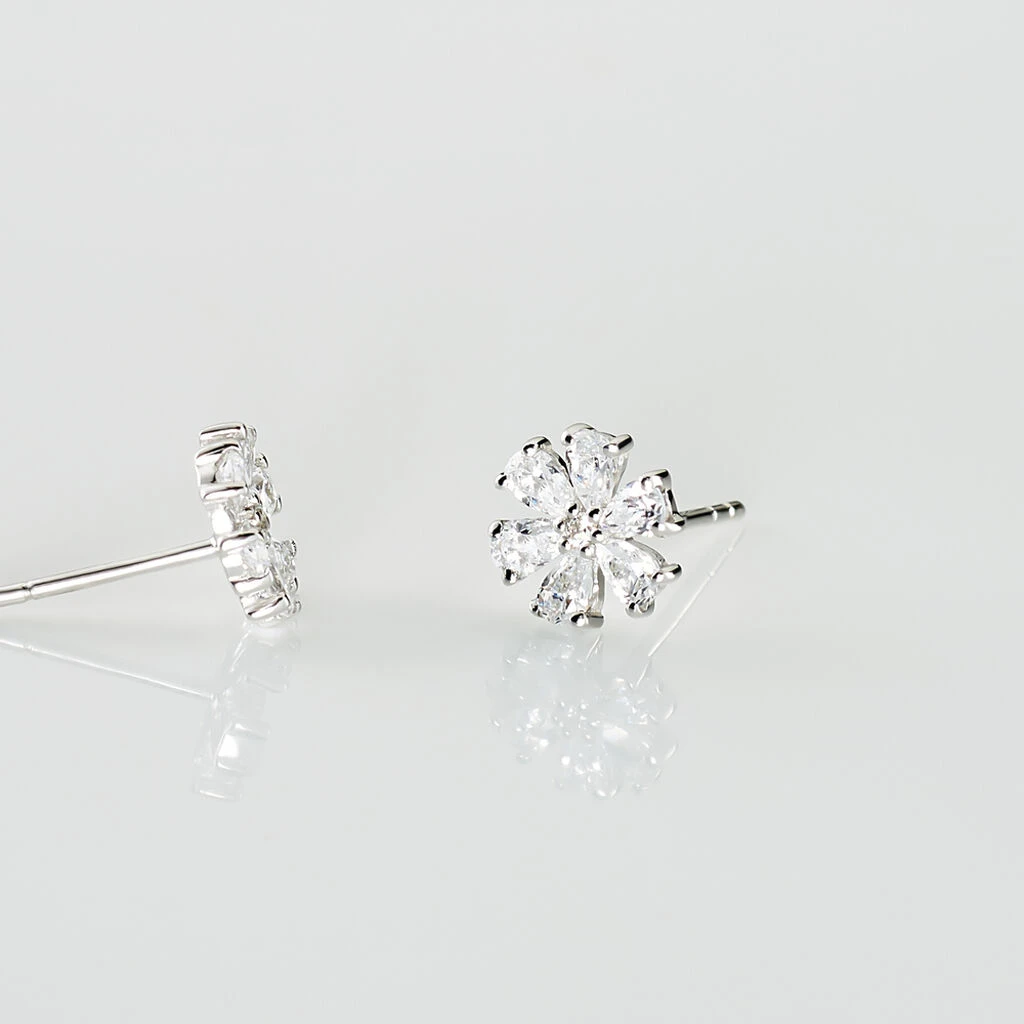 Boucles D’oreilles Puces Maelane Or Blanc Oxyde De Zirconium