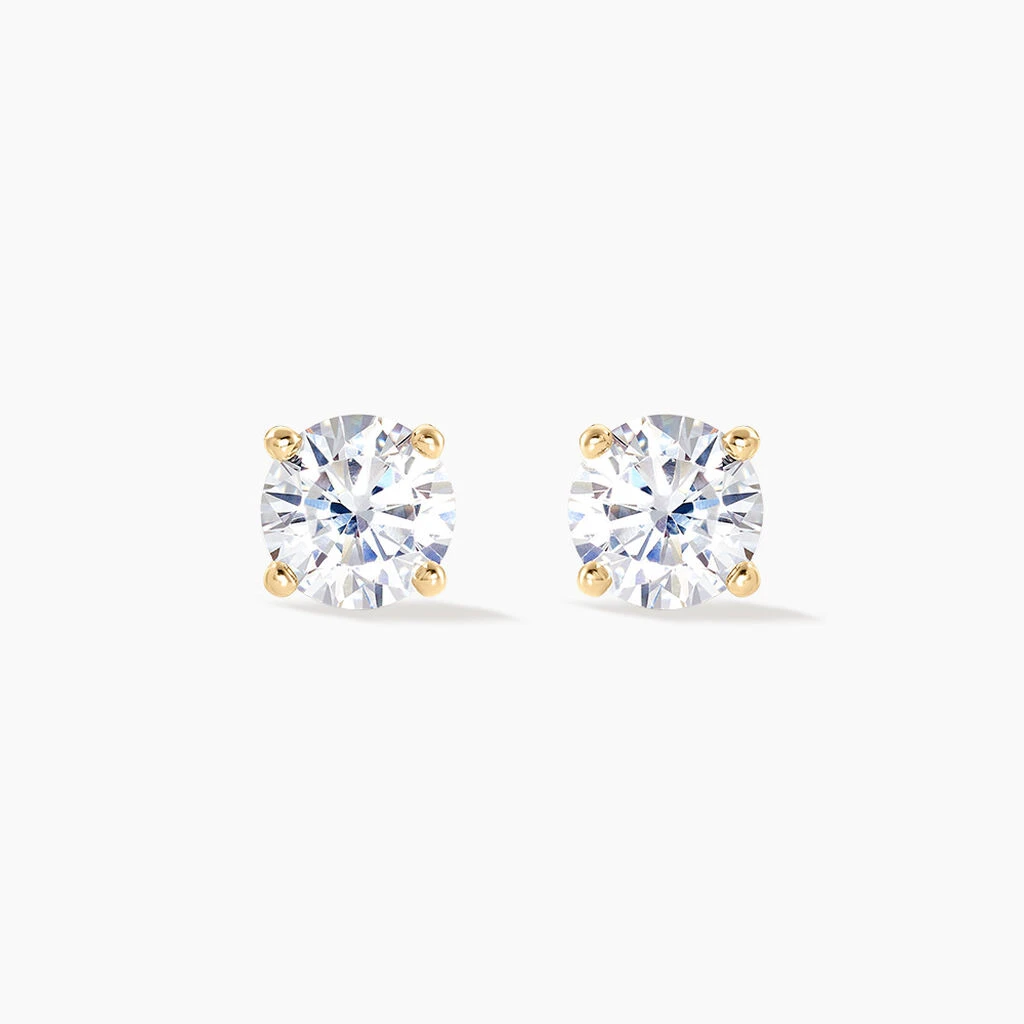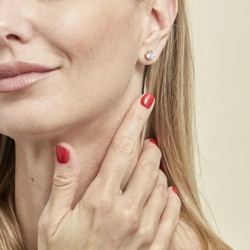 Boucles D’oreilles Puces Plaque Or Jaune Oxydes De Zirconium 6mm Sertis 4 Griffes