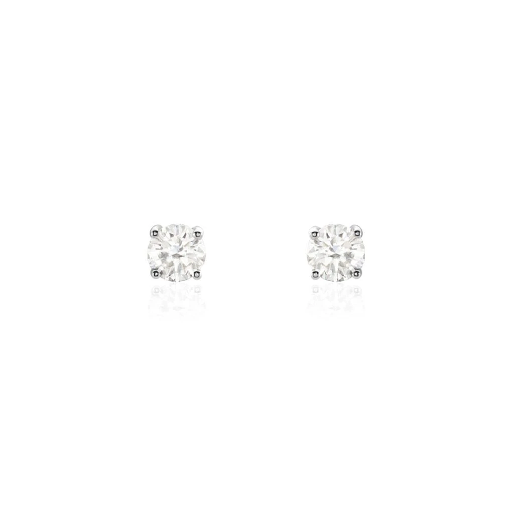 Boucles D’oreilles Puces Or Blanc Diamants Synthétique