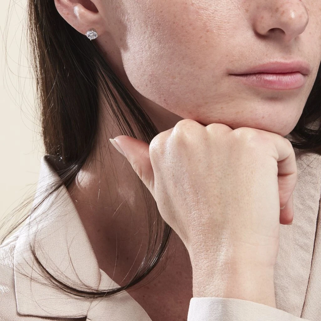Boucles D’oreilles Puces Or Blanc Katherina Oxyde De Zirconium