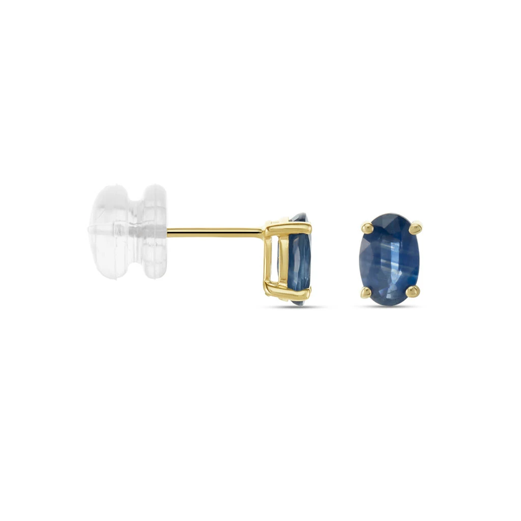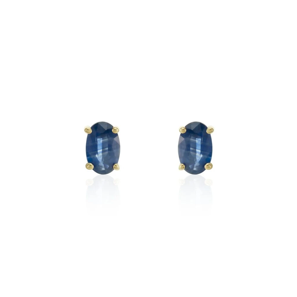 Boucles D’oreilles Puces Or Jaune 375/1000 Saphir Oval Serti Griffes 1.18ct