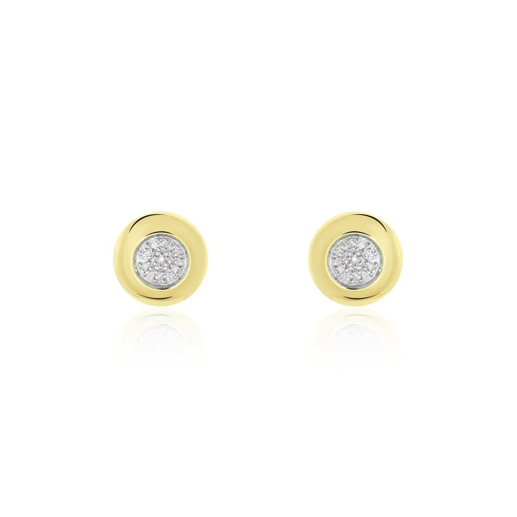Boucles D’oreilles Puces Or Jaune 375/1000 Pastilles Pavages Diamants