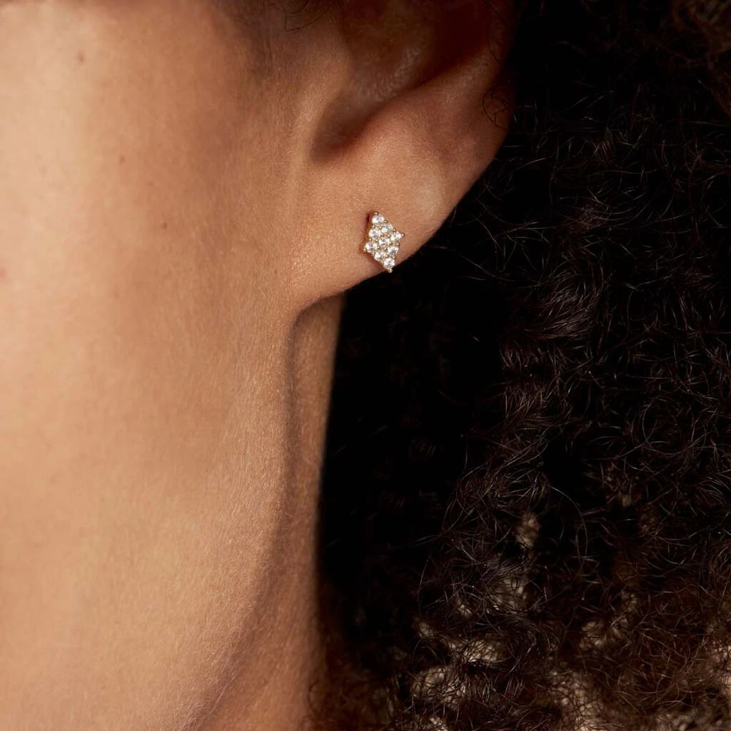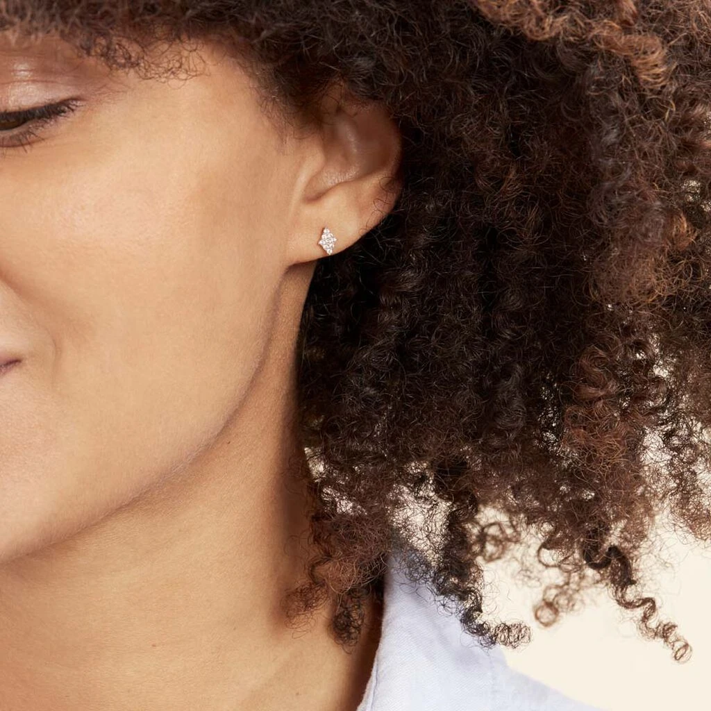 Boucles D’oreilles Puces Or Jaune 375/1000 Losanges Pavage Oxydes De Zirconium