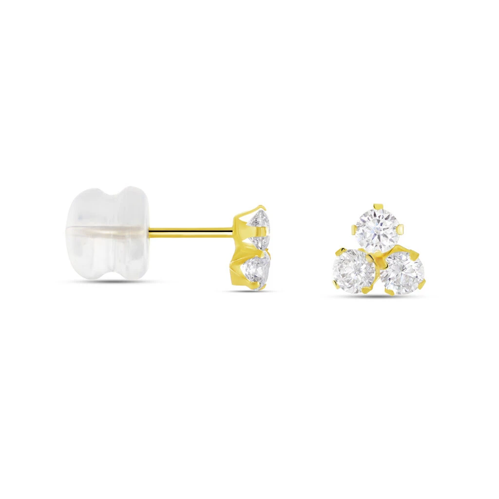Boucles D’oreilles Or Jaune 375/1000 3 Oxydes De Zirconium 2.5mm
