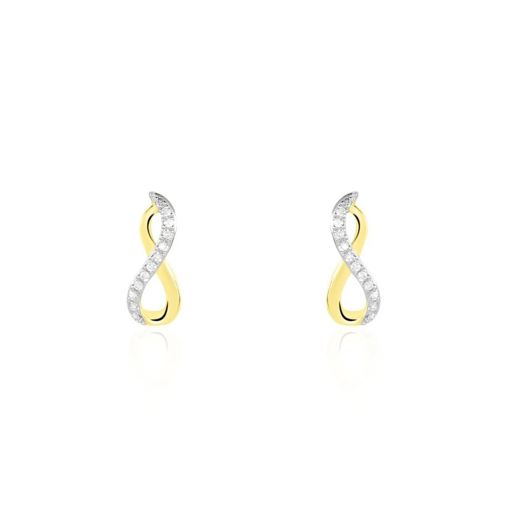 Boucles D’oreilles Or Jaune 375/1000 Forme Infini Pavage Diamants