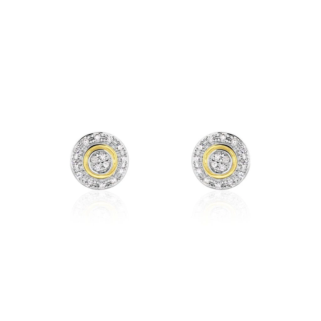 Boucles D’oreilles Puces Rosangela Or Bicolore Diamant Blanc