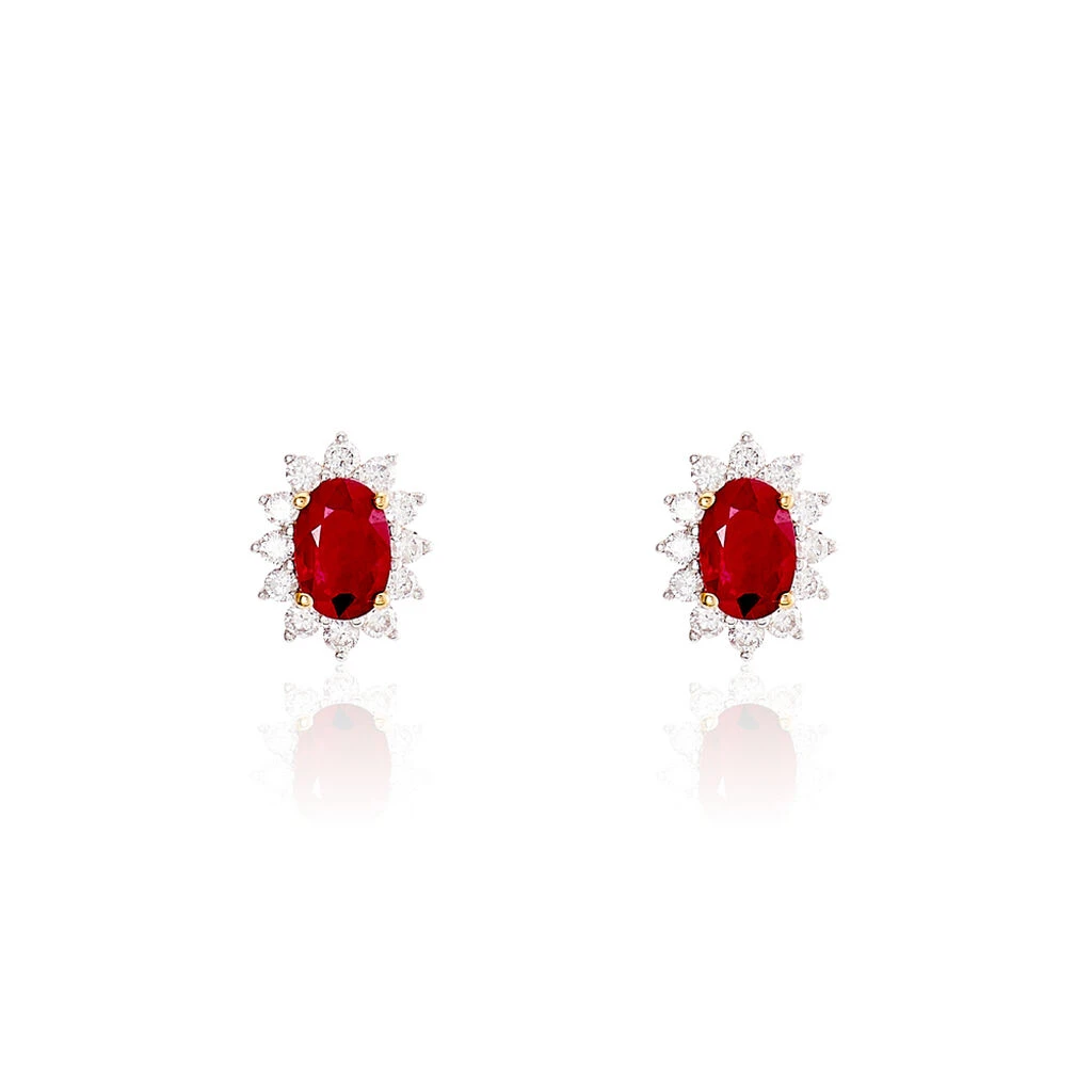 Boucles D’oreilles Or Jaune 375/1000 Rubis Simple Entourage Diamants Blancs Vassili Pm