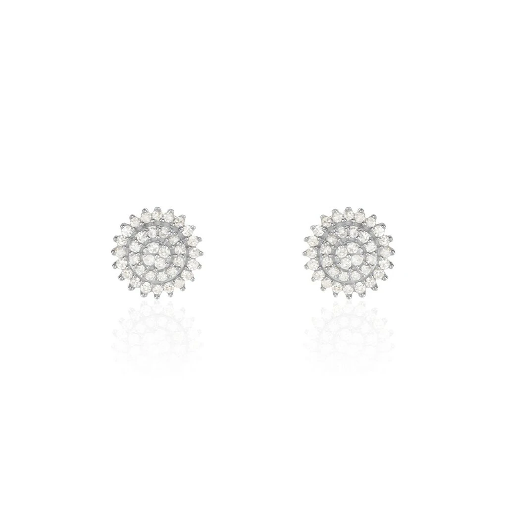 Boucles D’oreilles Puces Or Jaune 375/1000 Forme Chou Pavage Diamants Blancs 0.2ct