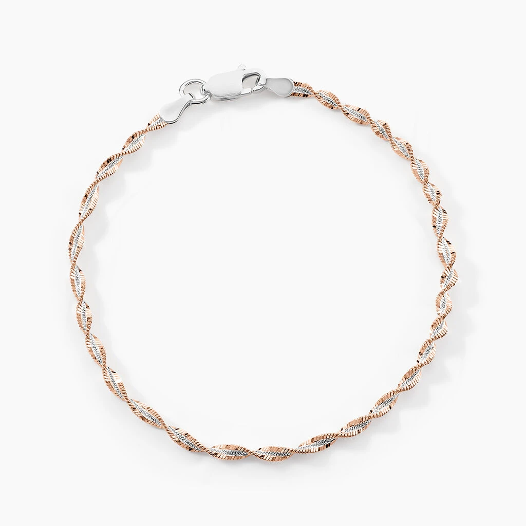 Bracelet Argent Bicolore 925/1000 Maille Torsade Largeur 2mm 18cm