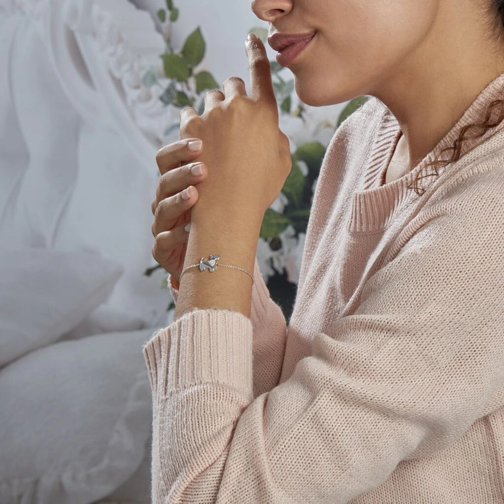 Bracelet Argent 925/1000 Origami Chien Volume Oxyde 18.5cm