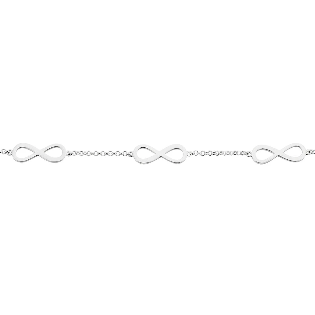 Bracelet Argent Blanc Rhodié 925/1000 Triple Infinis Maille Forcat 19cm