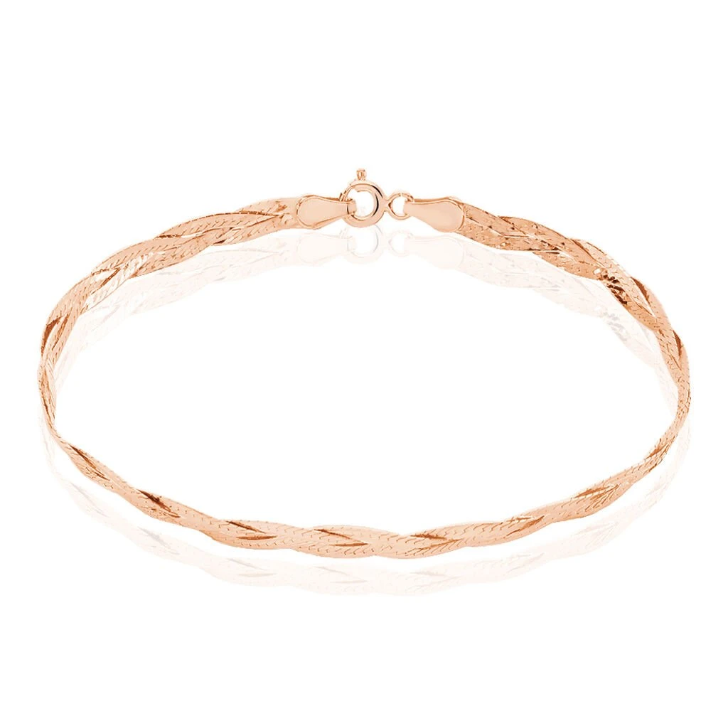 Bracelet Or Rose 375/1000 Maille Tresse 3.6mm 18cm