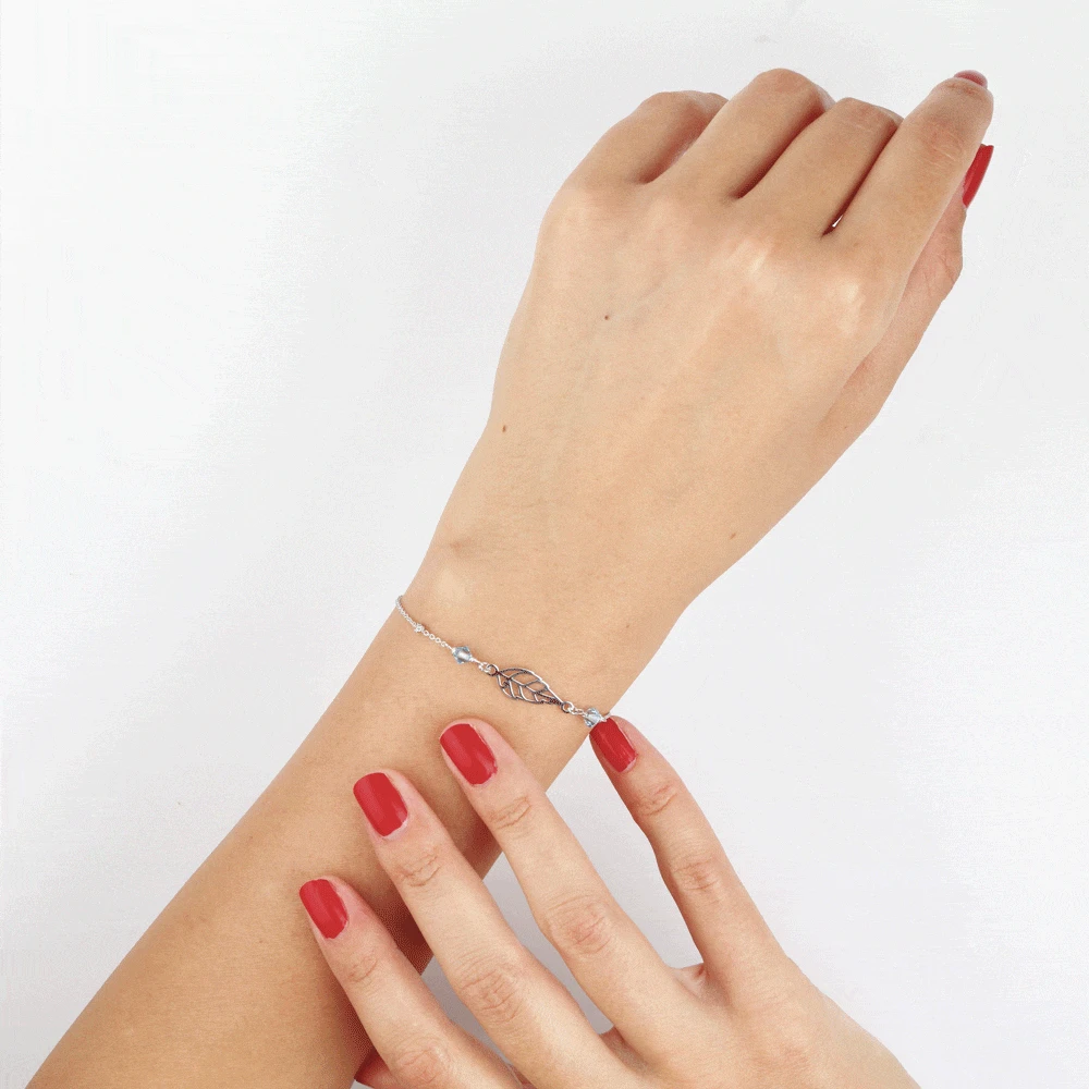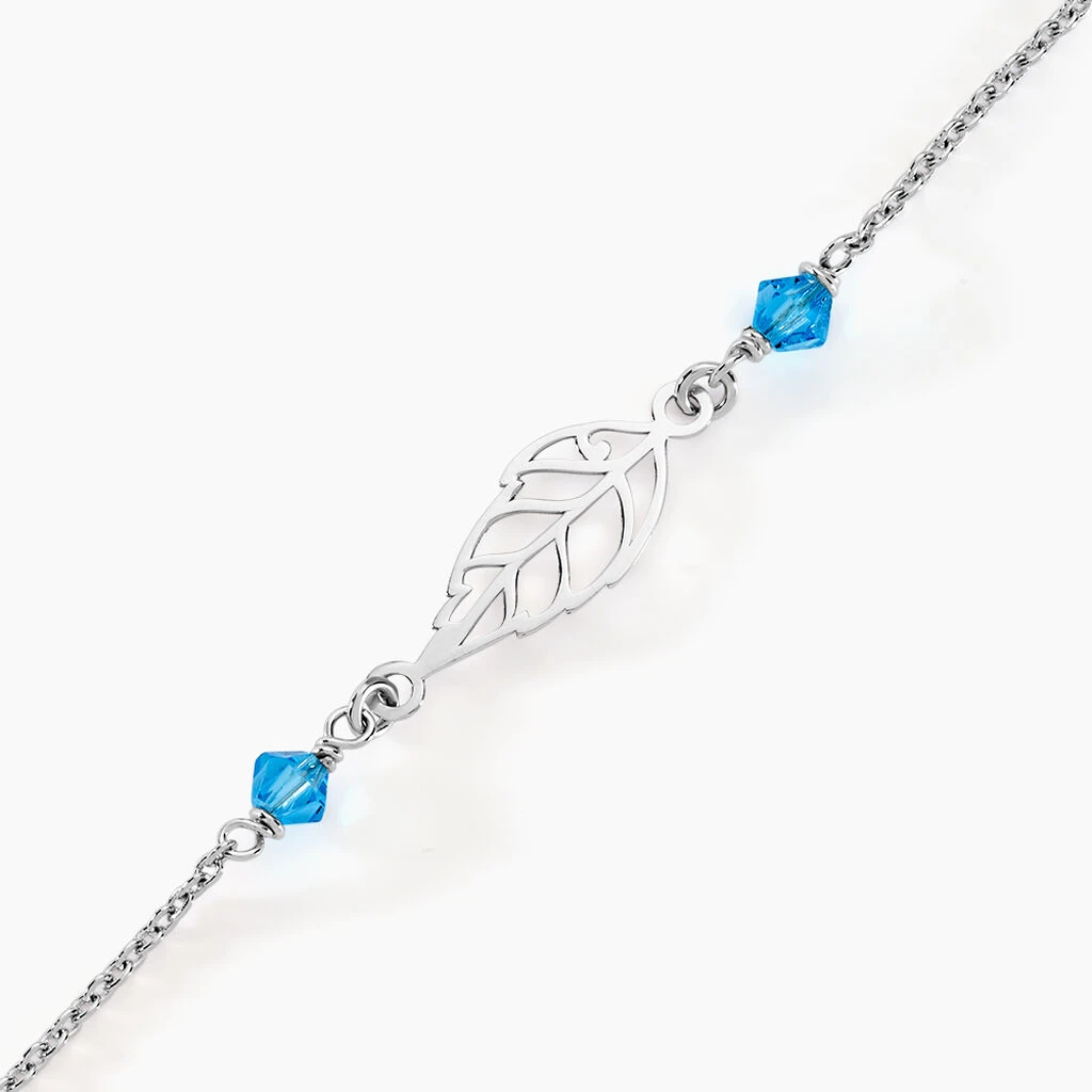 Subtil et discret, ce bracelet en argent 925/1000ème complète toutes les tenues. Il arbore un design classique indémodable avec sa chaîne maille forçat et son motif feuille ajourée. Ce dernier est placé au milieu de deux pierres bleues qui ajoutent une touche de couleur à ce bijou.