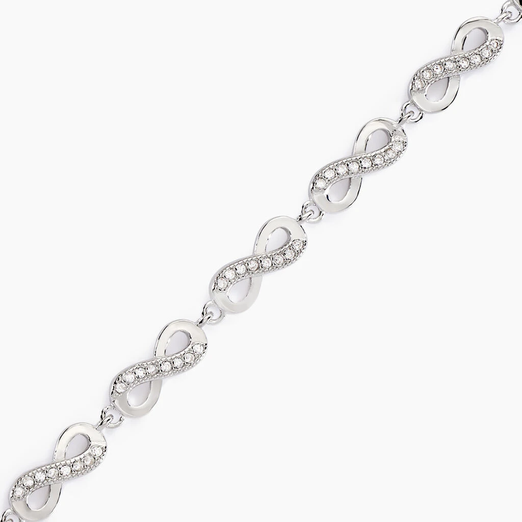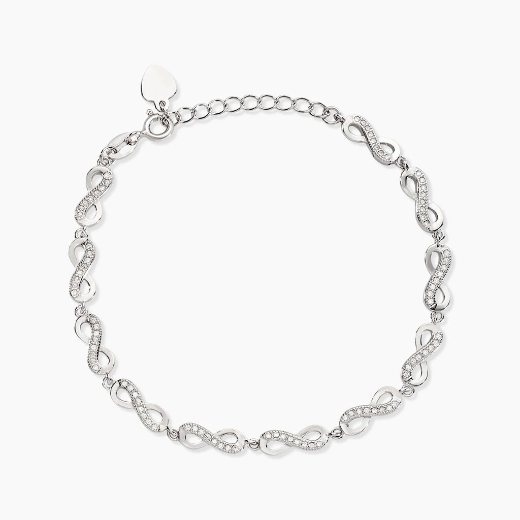 Bracelet Argent Blanc 925/1000 Chaine D’infinis Pavage Oxydes De Zirconium 19cm