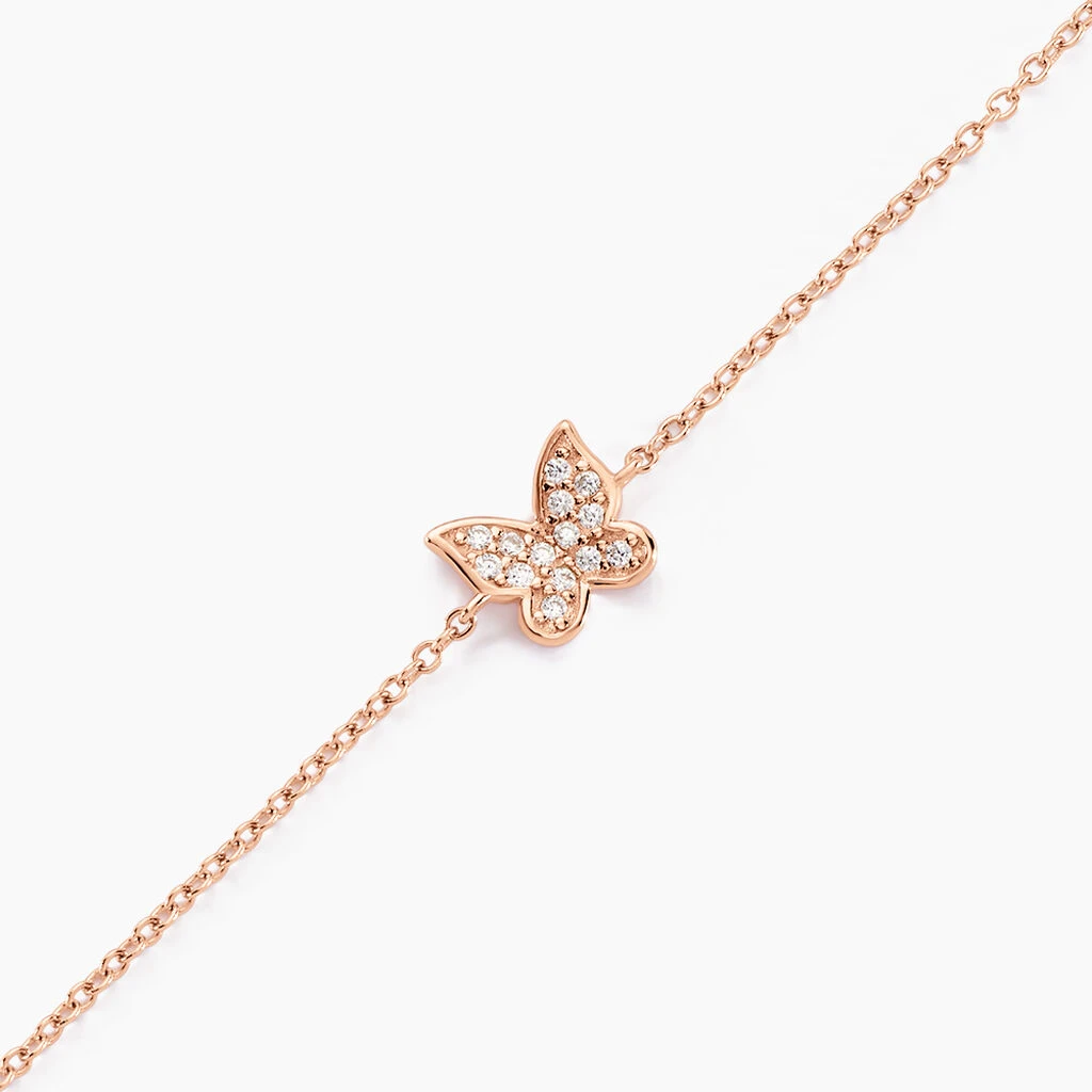 Bracelet Argent Rose 925/100 Rose Motif Papillon Pavage Oxydes De Zirconium 18.5cm