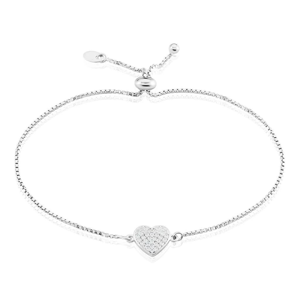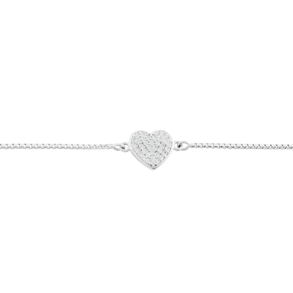 Bracelet Fermeture Coulissante Argent Blanc 925/1000 Cœur Pavage Oxydes De Zirconium Maille Vénitienne 22cm
