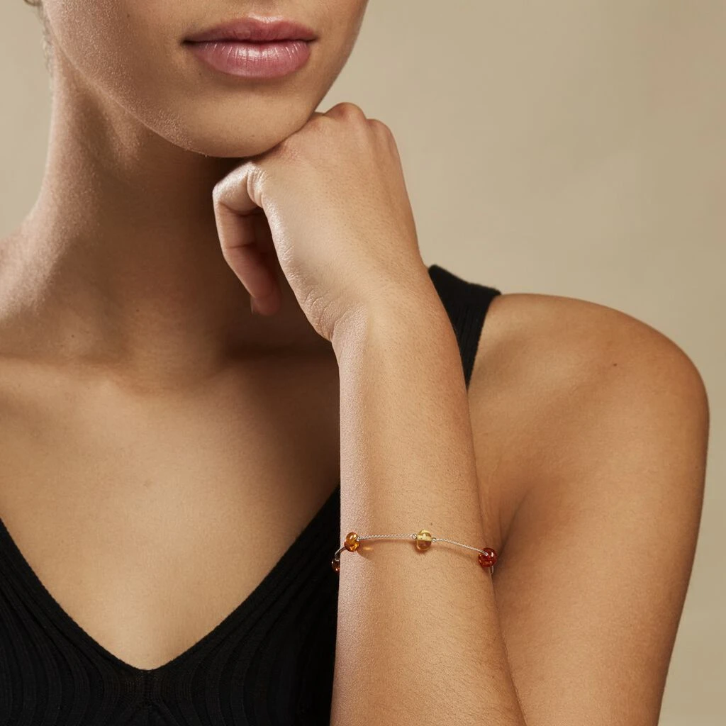Bracelet Argent Blanc 925/1000 Boules Ambres Multicolores Miel/cognac/marron 19cm
