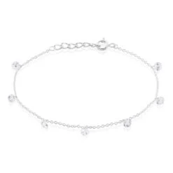 Bracelet Argent Blanc 925/1000 6 Gouttes Oxydes De Zirconium Perces Maille Forcat 19cm