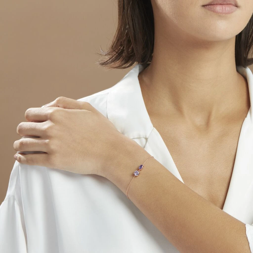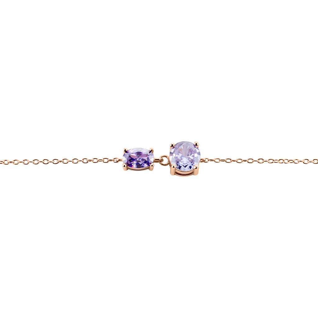 Bracelet Argent Rose 925/1000 Serti Griffes Oxyde De Zirconium Lavande Et Violet Maille Forçat 19cm