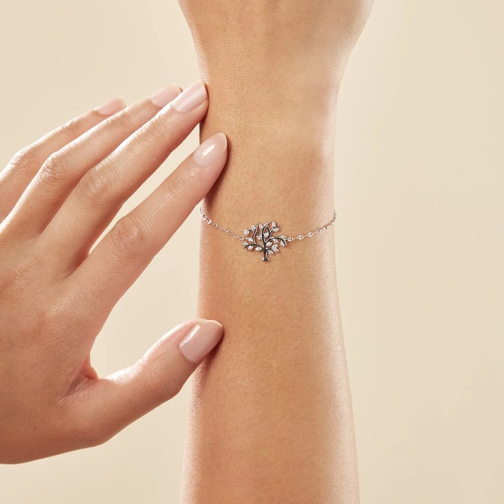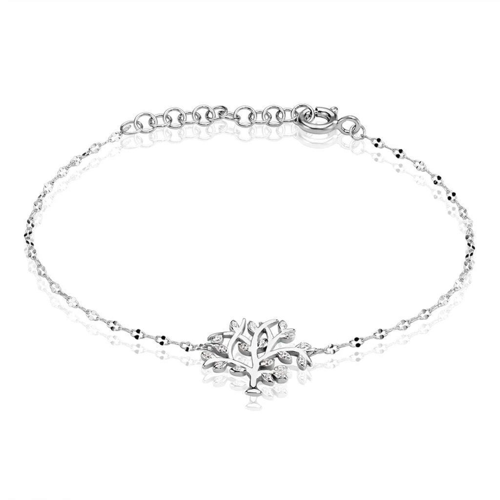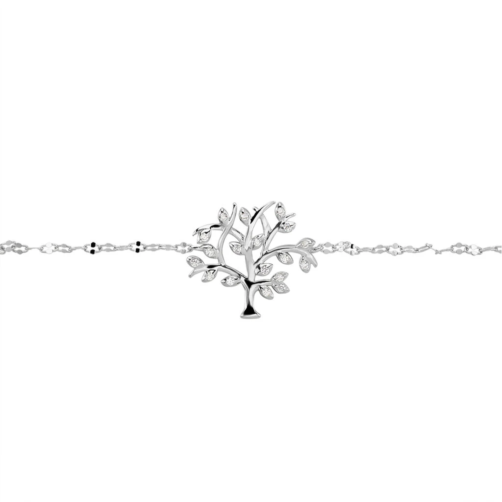 Bracelet Argent Blanc 925/1000 Arbre Pavage Oxydes De Zirconium Maille Fantaisie 18cm