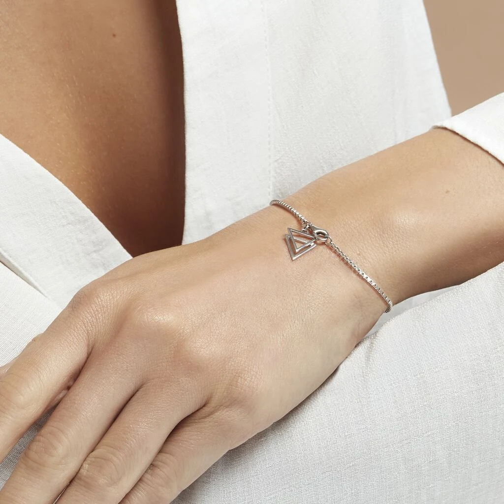 Bracelet Argent Blanc 925/1000 Pampille Double Triangles Ajourés Maille Venitienne 20cm