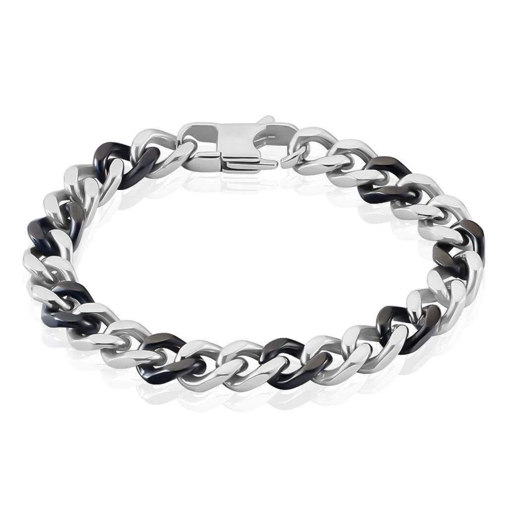 Bracelet Acier Noir Et Gris Maille Gourmette 21cm