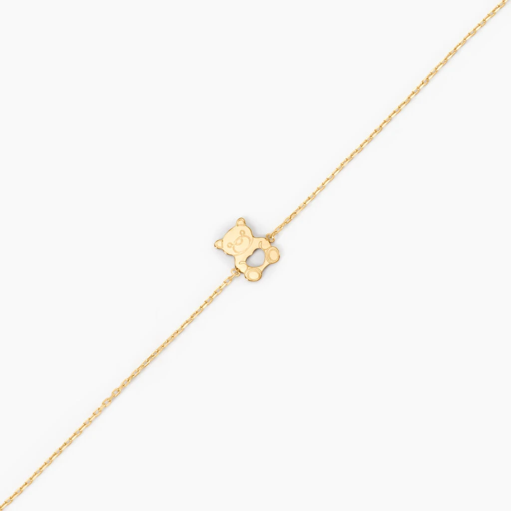 Bracelet Or Jaune 375/1000 Ourson Cœur Ajoure 14cm