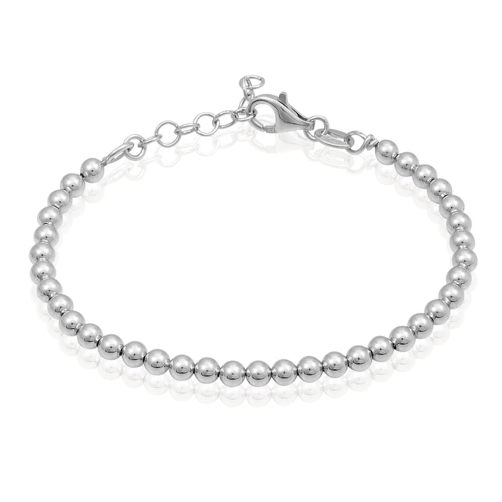 Bracelet Argent Blanc 925/1000 Boules Lisses Largeur 3mm 19cm