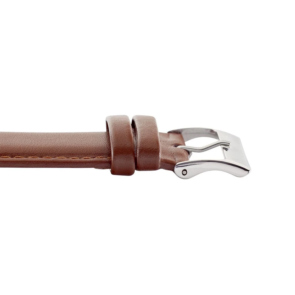Bracelet De Montre Cuir Lisse Marron Boucle Argentee 22mm