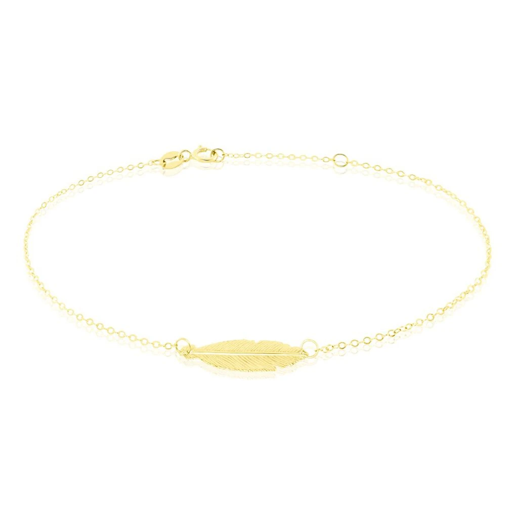 Bracelet Or Jaune 375/1000 Plume Maille Forçat 18cm