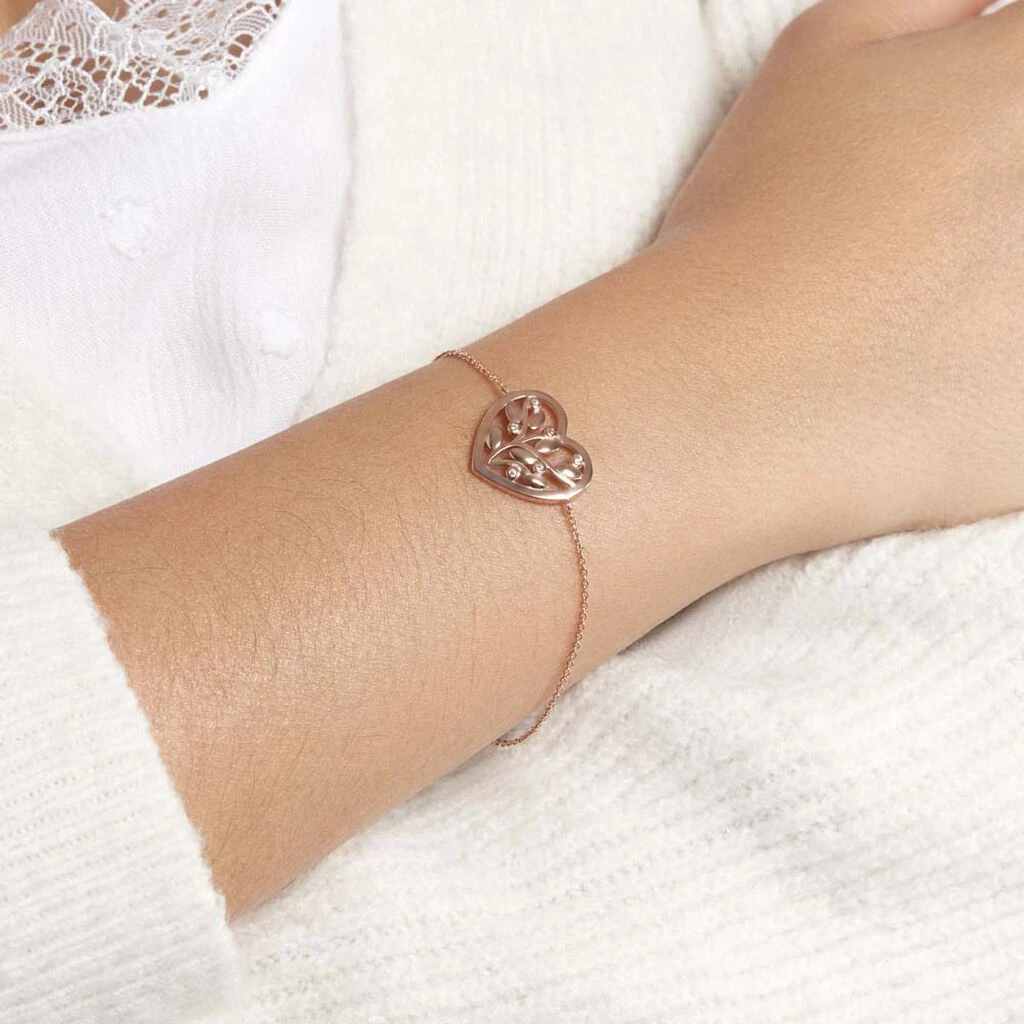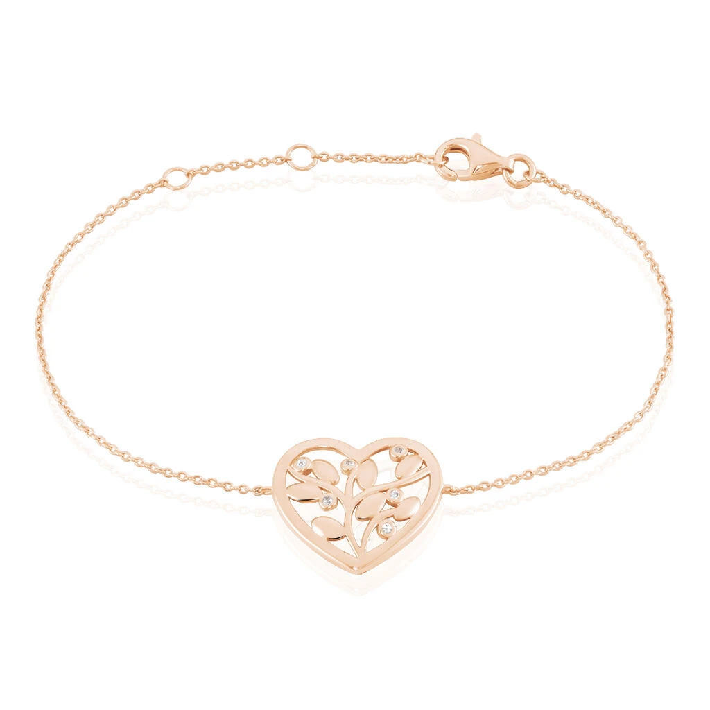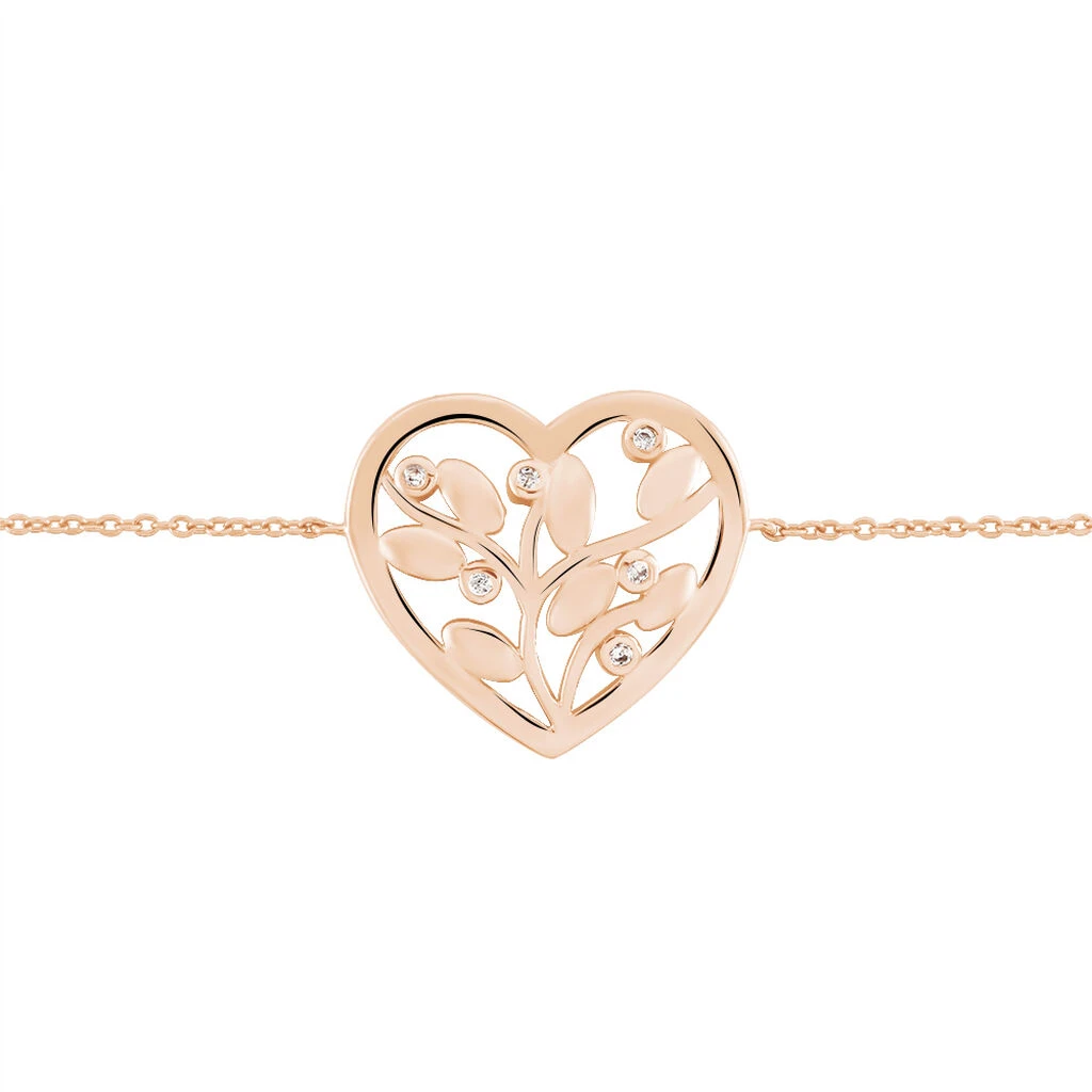 Bracelet Argent Rose 925/1000 Cœur Rempli D’un Arbre De Vie Sertis Clos Oxydes De Zirconium 18.5cm
