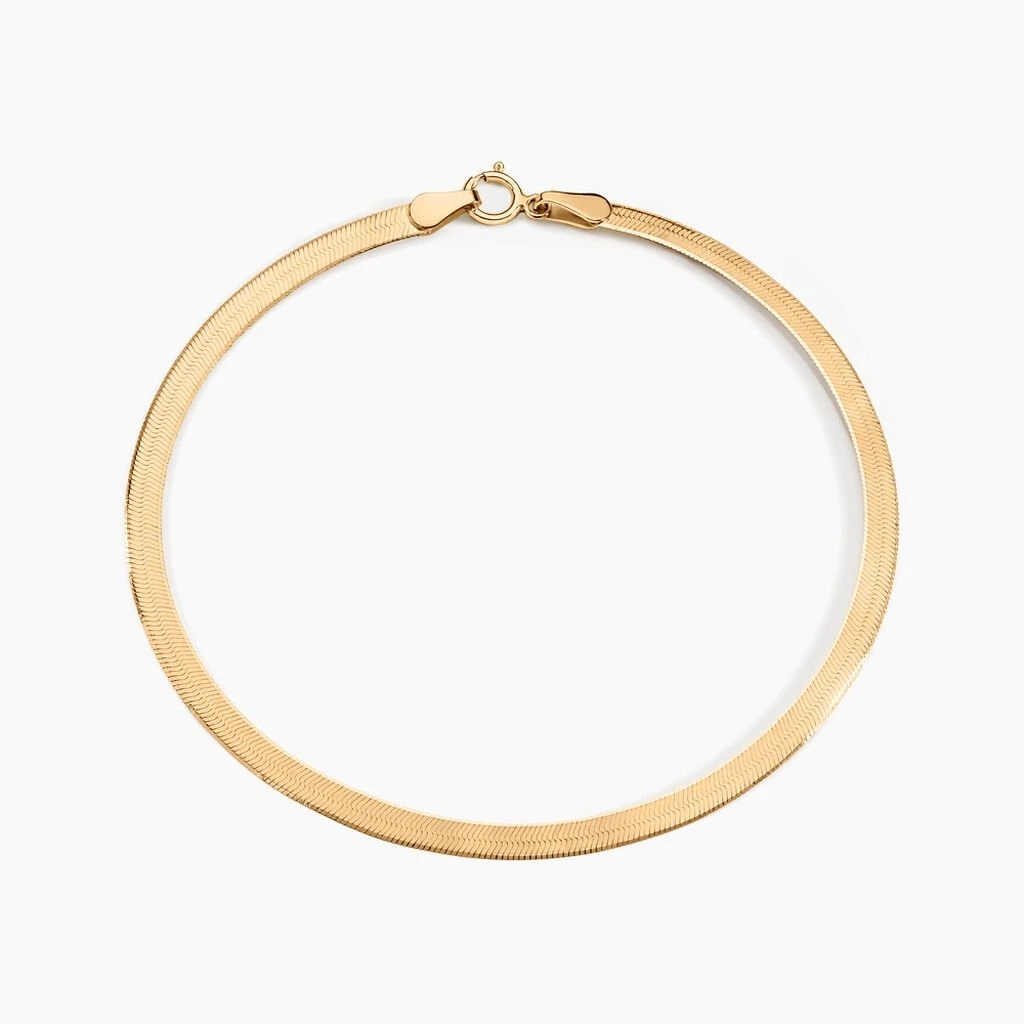 Bracelet Or Jaune 375/1000 Maille Heringbone Droit Lisse 17cm 2.9mm