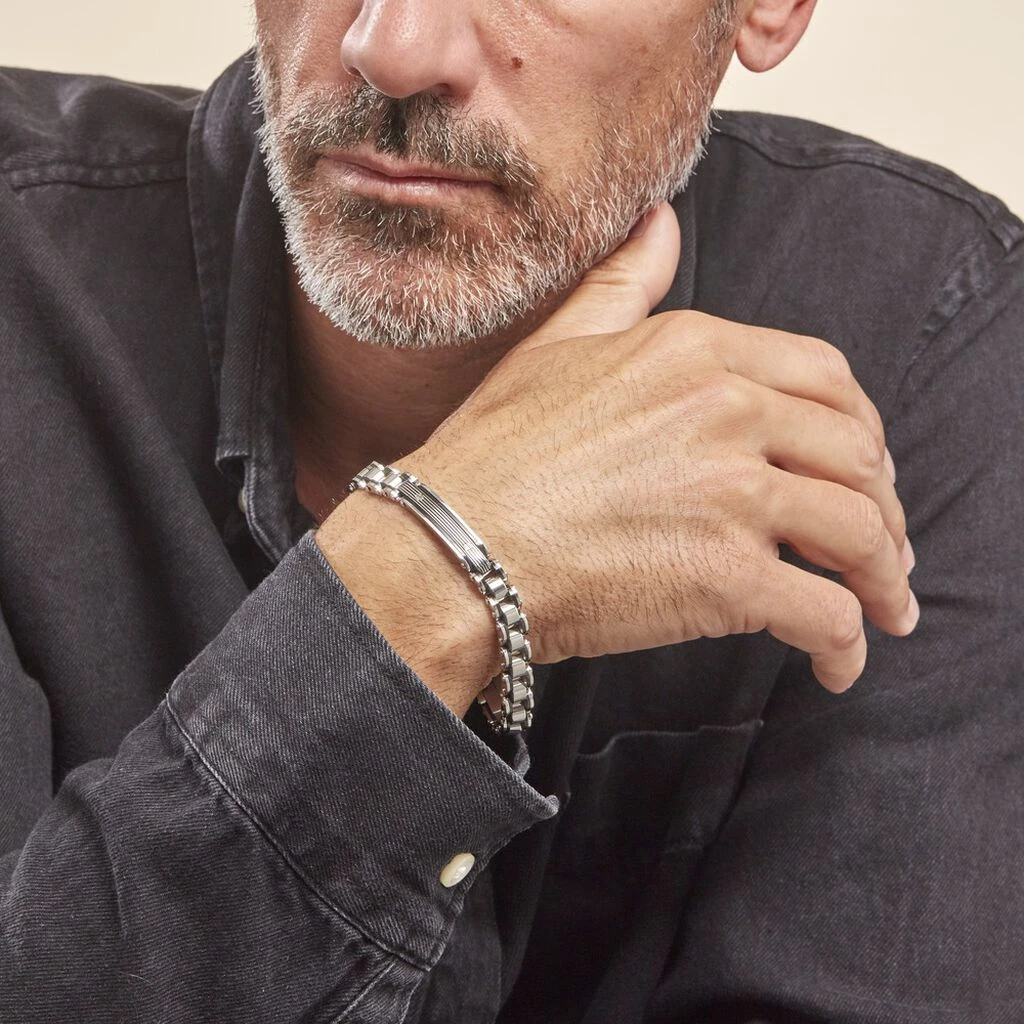 Bracelet Identite Acier Blanc Et Noir Maille Mecanique 21cm
