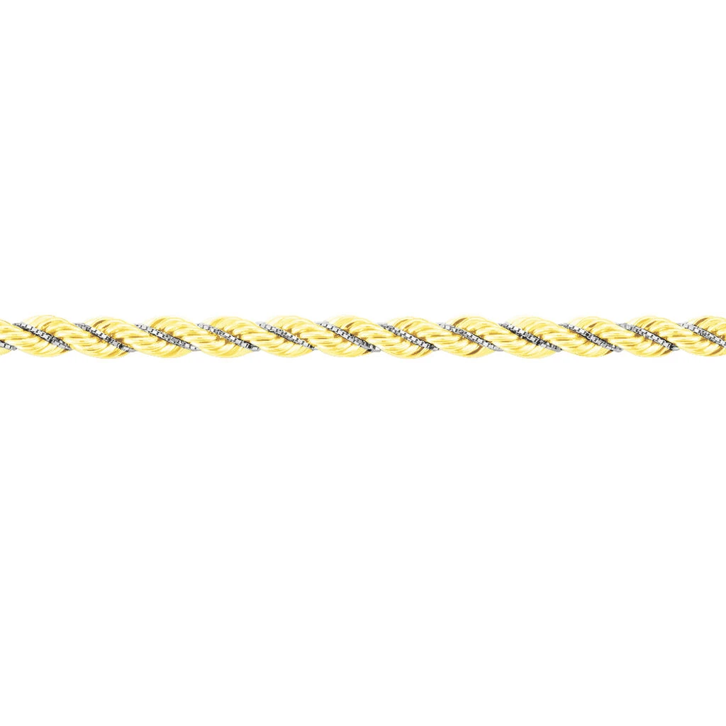 Bracelet Or Bicolore 375/1000 Maille Corde Et Vénitienne 4mm 18cm