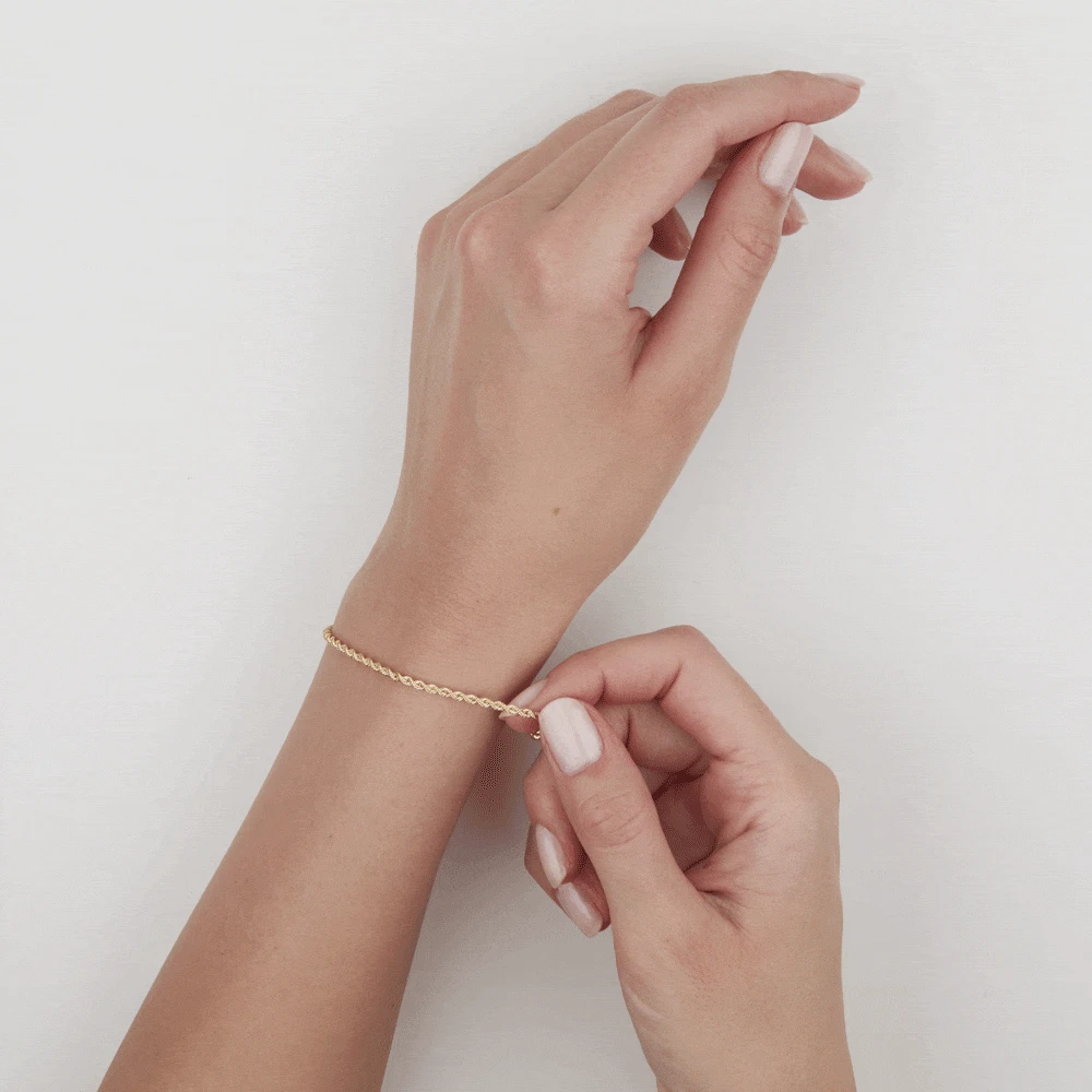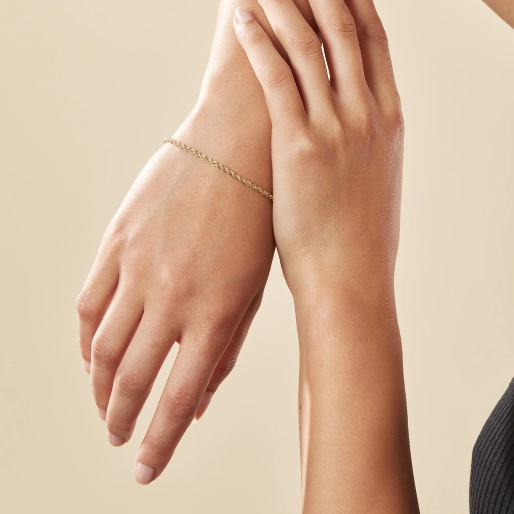 Ce bracelet en or jaune 375/1000ème se distingue par son caractère élégant et intemporel. Difficile de nier le charme de sa maille corde et de sa finition soignée. Le modèle dispose aussi d’un fermoir anneau ressort. Le bracelet existe également en or blanc.