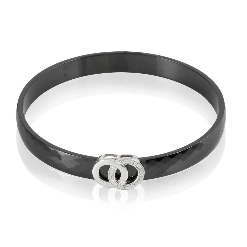 Bracelet Jonc Argent Blanc Oxyde De Zirconium Et Céramique