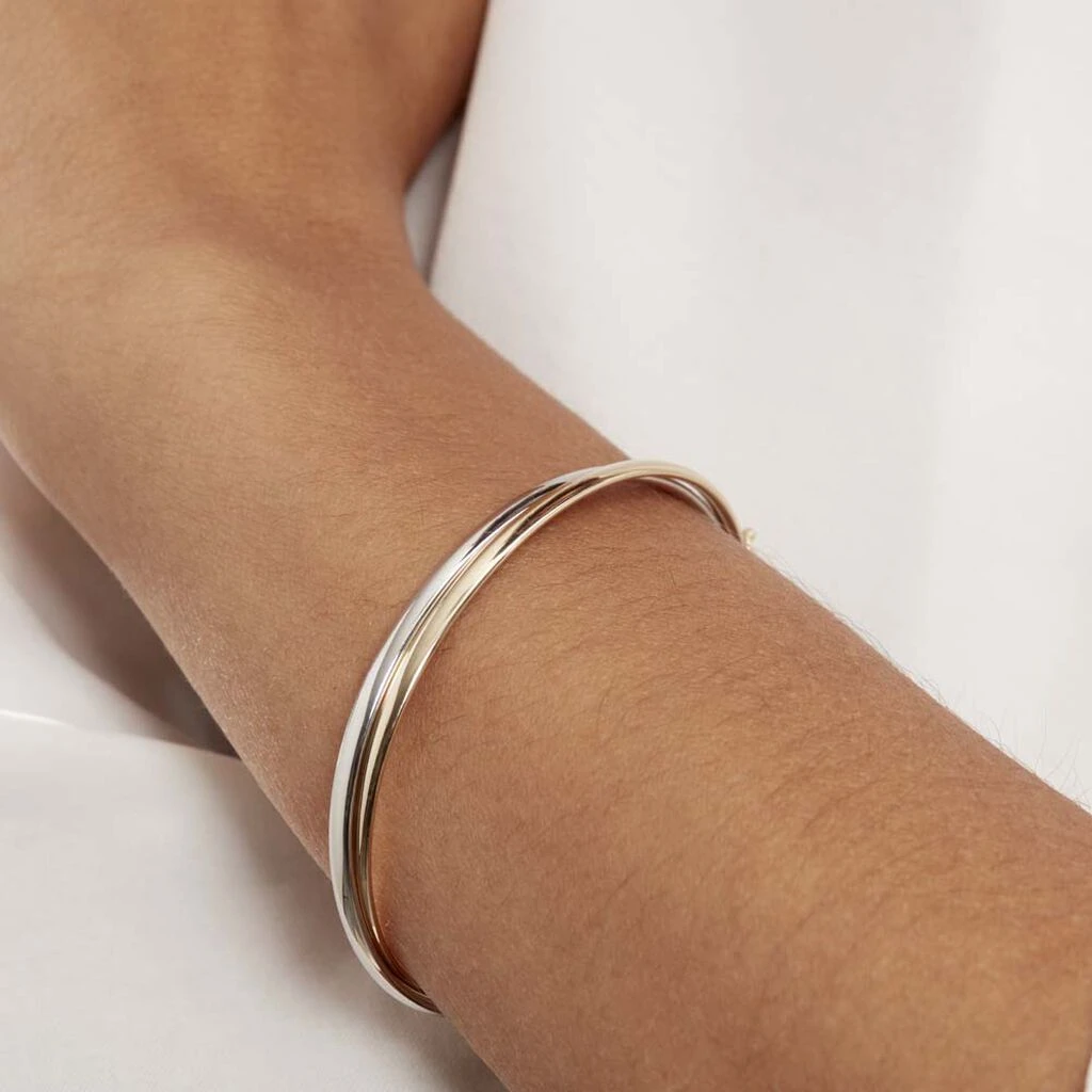 Bracelet Jonc Catalin 2 Fils Flexibles Or Bicolore