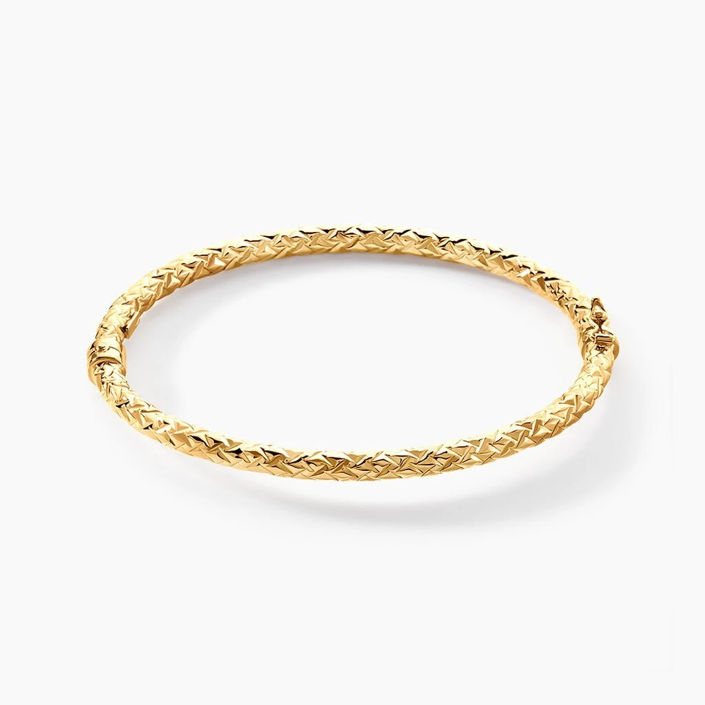 Bracelet Jonc Or Jaune 375/1000 Effet Diamante 4mm