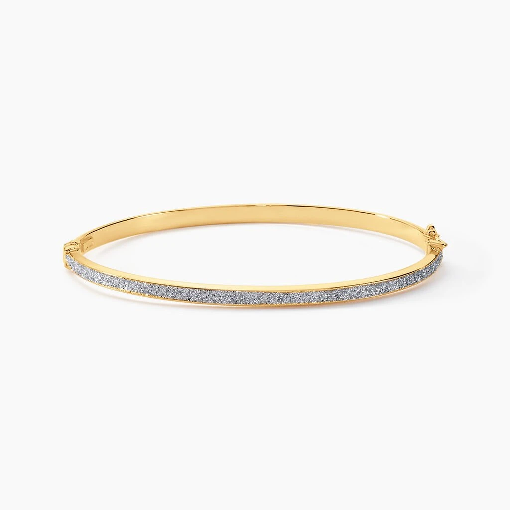 Bracelet Jonc Or Jaune 375/1000 Fil Plat 3.5mm Glitter Silver Diamètre 60mm