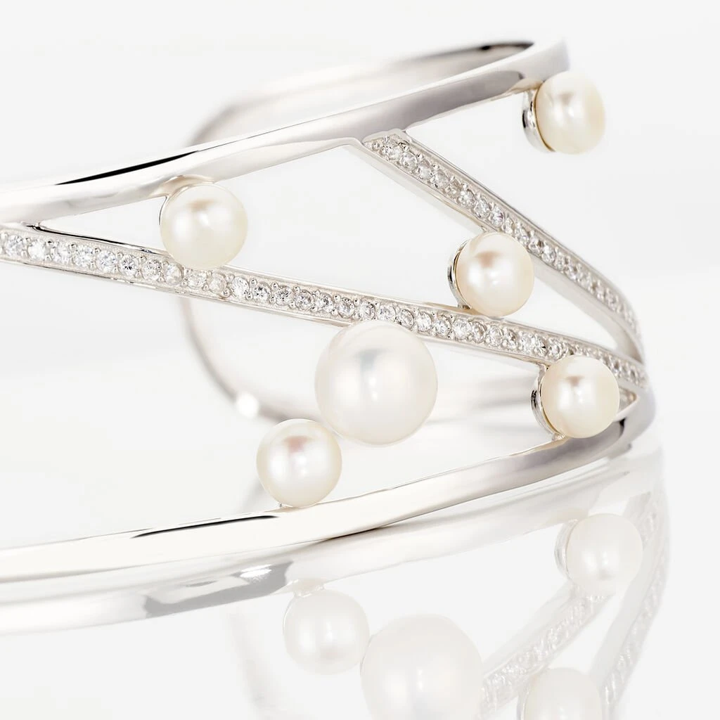 Bracelet Jonc Nissi Argent Blanc Perle De Culture Oxyde De Zirconium