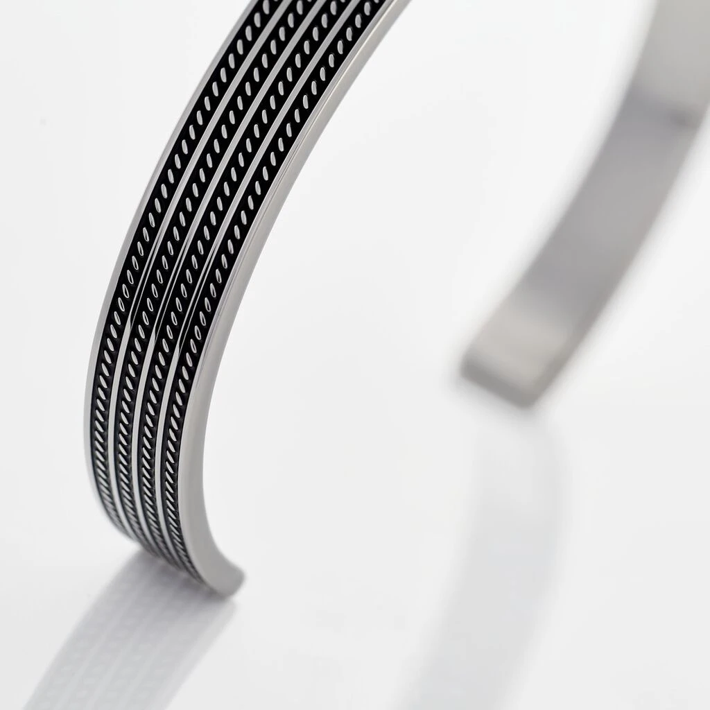 Bracelet Jonc Ouvert Acier Bicolore 4 Rangs Largeur 8mm Diametre 62mm