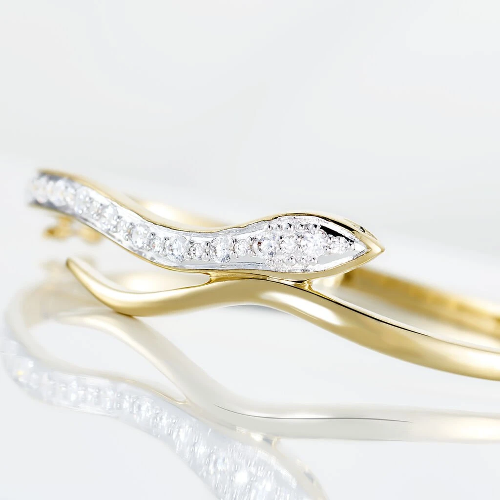 Bracelet Jonc Plaqué Or Jaune Serpent + Oxydes De Zirconium + Rhodium 62mm