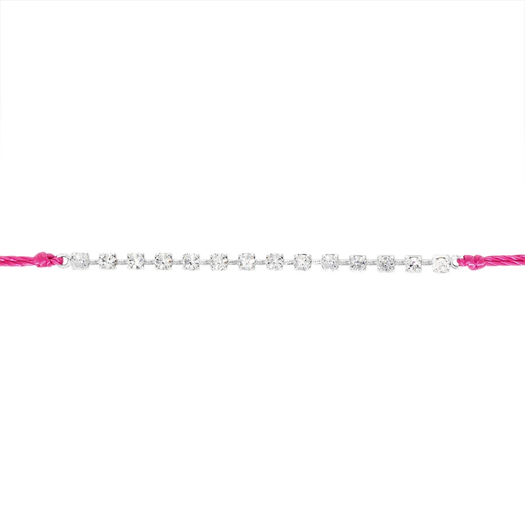 Bracelet Argent 925/1000 Oxydes Cordon Fuschia 16.5+3cm