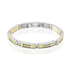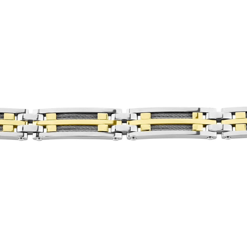 Bracelet Jourdan Priam Acier Blanc Et Jaune Cable Blanc 21cm Jh110025b