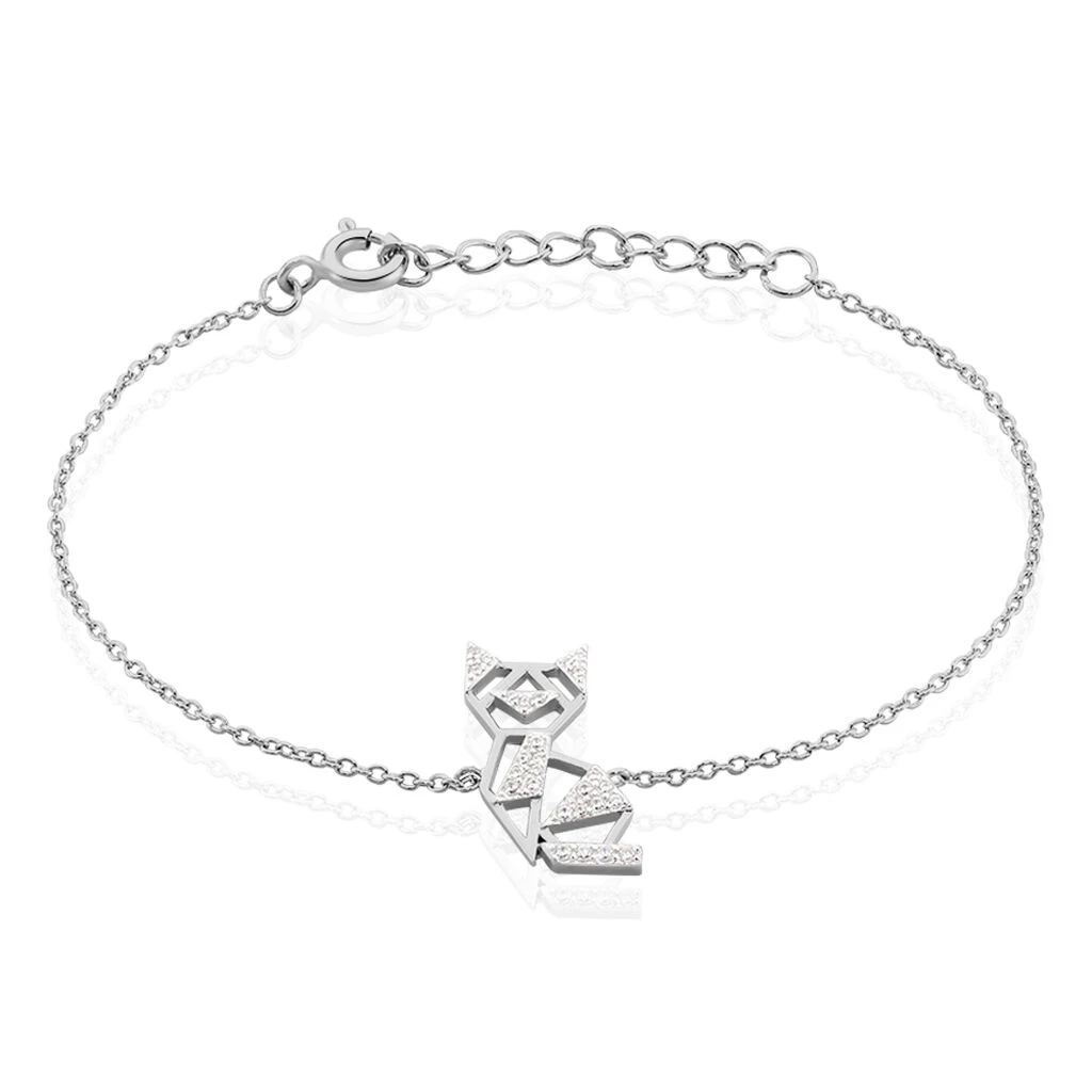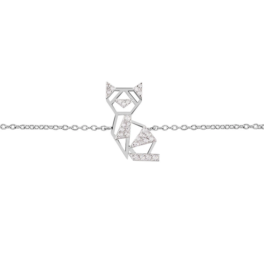 Bracelet Argent 925/1000 Origami Chat Microsetting Oxyde 18.5cm